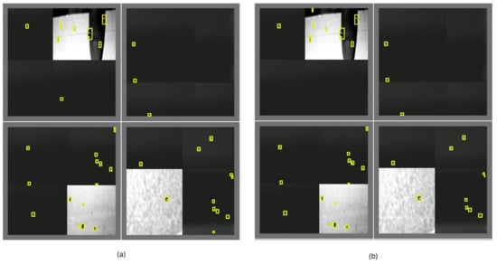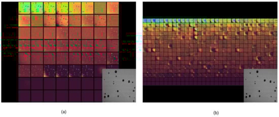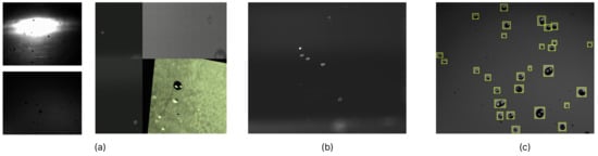Figure 11a consists of the labeled ground truth images, which contain multiple bounding boxes that denote the droplets. Figure 11b shows the detection results on the right, and it highlights the droplets detected by the model with high confidence scores (>0.9). The confidence score represents the level of certainty or confidence assigned by the model to each detected droplet. It indicates the model’s confidence in the accuracy of the detection, with higher scores indicating a stronger belief that the droplet is present. Notably, the detection results, as shown in Figure 11b, encompassed all of the droplets present in the ground truth data, which is shown in Figure 11a. Interestingly, the model can even detect additional droplets that do not have corresponding bounding boxes that the ground truth data missed. It appears that the droplet detection model achieved an exceptional performance, in which it potentially indicated convergence and exhibited a high level of effectiveness.