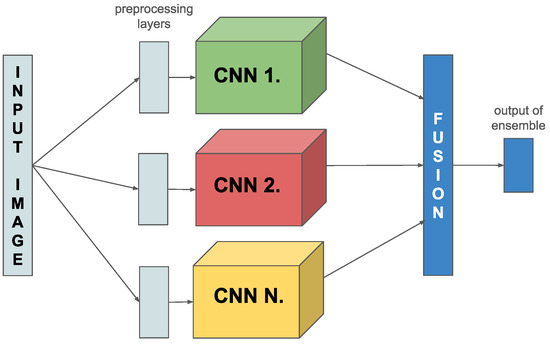Many articles show us that the ensemble model can be used in classification problems [23,24,25]. There are several techniques that exist to concatenate models into an ensemble from the basic arithmetic means, weighted means, voting to an advanced meta-learner [26,27,28,29,30,31]. Some other papers show the medical usage of CNN ensemble techniques [32,33,34]. There are some interesting offline methods, including those from Zhu et al. (2023), who demonstrated improvements using dynamic ensemble learning [35]; Xia et al. (2021), who highlighted the effectiveness of weighted classifier selection and stacked ensembles [36]; Yao et al. (2021), who introduced the MLCE method using label correlations effectively [37] and Nanni et al. (2021), who combined ensemble methods with deep learning techniques, showing significant performance boosts [38].