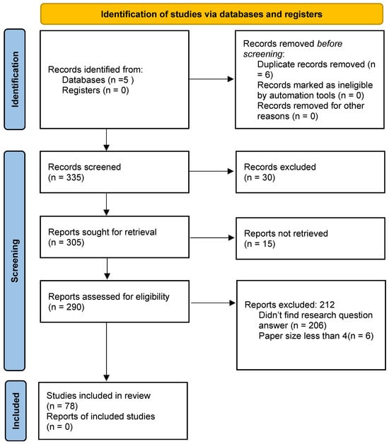 In our initial search, we obtained 341 research articles. After removing duplicates, 335 articles remained for screening. During the abstract and title screening phase, we excluded 30 articles, leaving 330 papers for full-text screening. However, due to library access limitations, we could not access the full texts of 15 papers, reducing the count to 290 papers for eligibility assessment. By applying our exclusion criteria to these 290 papers, we ultimately identified 88 relevant papers that addressed our research question and were included in our review study.