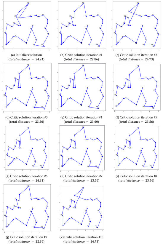 Initial Instructions: like the initializer agent, the critic starts with the same basic guidelines regarding the depot, unique node visits by each salesman, minimizing route intersections, and covering clustered points.