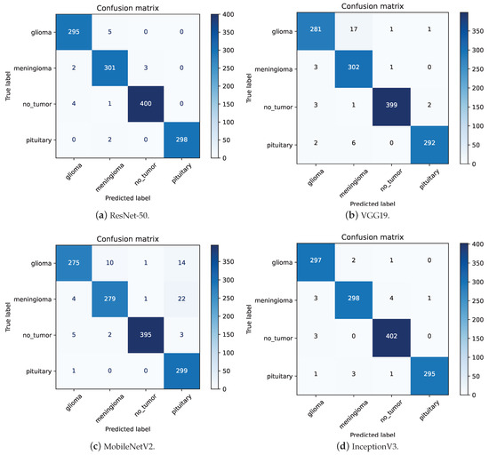 | Rajput et al., 2024 [13] | VGG19, InceptionV3, ResNet-50 | Brain tumor MRI dataset | Glioma, Meningioma, Pituitary, and No-tumor | 7023 | Multi-class | Small test set and potential bias from test data knowledge |