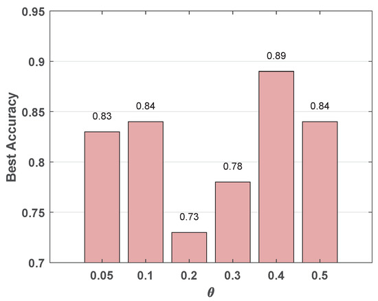 In this experiment, we particularly focus on analyzing how different settings of the parameter influence classification accuracy when applying NCP, with values ranging from 3 to 10. The results, as illustrated in Figure 5, show that as varies from 0.05 to 0.5, the best accuracy peaks at with an accuracy of 0.89. This demonstrates an optimal balance between node reduction and the preservation of critical graph structure, highlighting the effectiveness of the NCP algorithm in managing graph complexity for graph classification.