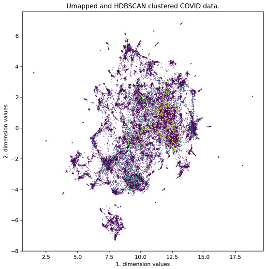 Two-dimensional UMAP representation of the CORD-19 dataset.