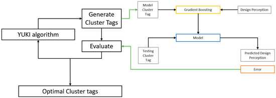 Figure 5 illustrates the sequential steps involved in our methodology. Initially, the YUKI algorithm is utilized to generate cluster tags based on input data. These cluster tags are then integrated into a gradient boosting framework, wherein predictive models are trained to forecast design perception. Throughout this process, the YUKI algorithm iteratively refines cluster tags, optimizing their efficacy in minimizing predictive model error.