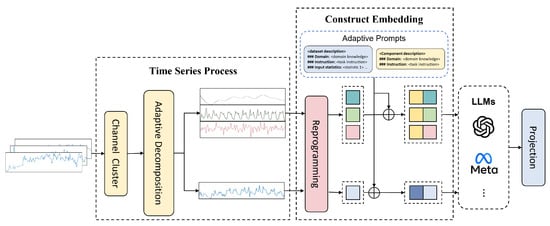 - Jin, M.; Wang, S.; Ma, L.; Chu, Z.; Zhang, J.Y.; Shi, X.; Chen, P.Y.; Liang, Y.; Li, Y.F.; Pan, S.; et al. Time-llm: Time series forecasting by reprogramming large language models. In Proceedings of the Twelfth International Conference on Learning Representations, Vienna, Austria, 7–11 May 2024. [Google Scholar]