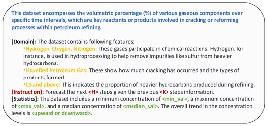 - Dataset Context: Provides background information about the input time series, incorporating semantic features along with domain-specific knowledge such as chemical- or industry-specific insights.