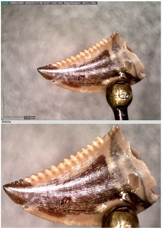 (Top): Microfossil tooth image before crop. (Bottom): After crop.