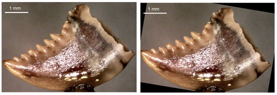 Vertebrate microfossils are even more challenging. They are defined as measuring less than 5 cm in maximum dimension and are often concentrated in localized areas called “microsites” [8]. Often, hundreds of kilograms of material must be processed to find a small number of specimens [9,10,11]. Microfossils are most commonly either hand-picked at the surface [12,13] or sifted in various grades of mesh [14]. One mm screening mesh is often the chosen minimal size [15], but smaller fish teeth [16] and other specimens, such as foraminifera [17], need even finer mesh sizes. However, these are inefficient and subjective approaches to research.