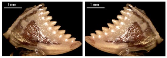 Figure 1 shows an example of an image in JPG format used in this study. Pictures were taken using a Dino-Lite Edge 3.0 digital microscope. The original images were cropped to remove extra information, such as mounting pins (Figure 2).