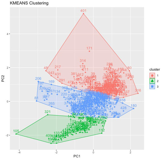 In this study, we did not use PCA numerical results as an input for K-Means clustering. This decision was based on the manageability of the dataset’s original variable count. Moreover, by directly using the original variables in K-Means, we ensured the interpretability of clustering results, preserving the inherent context and meaning associated with each feature.