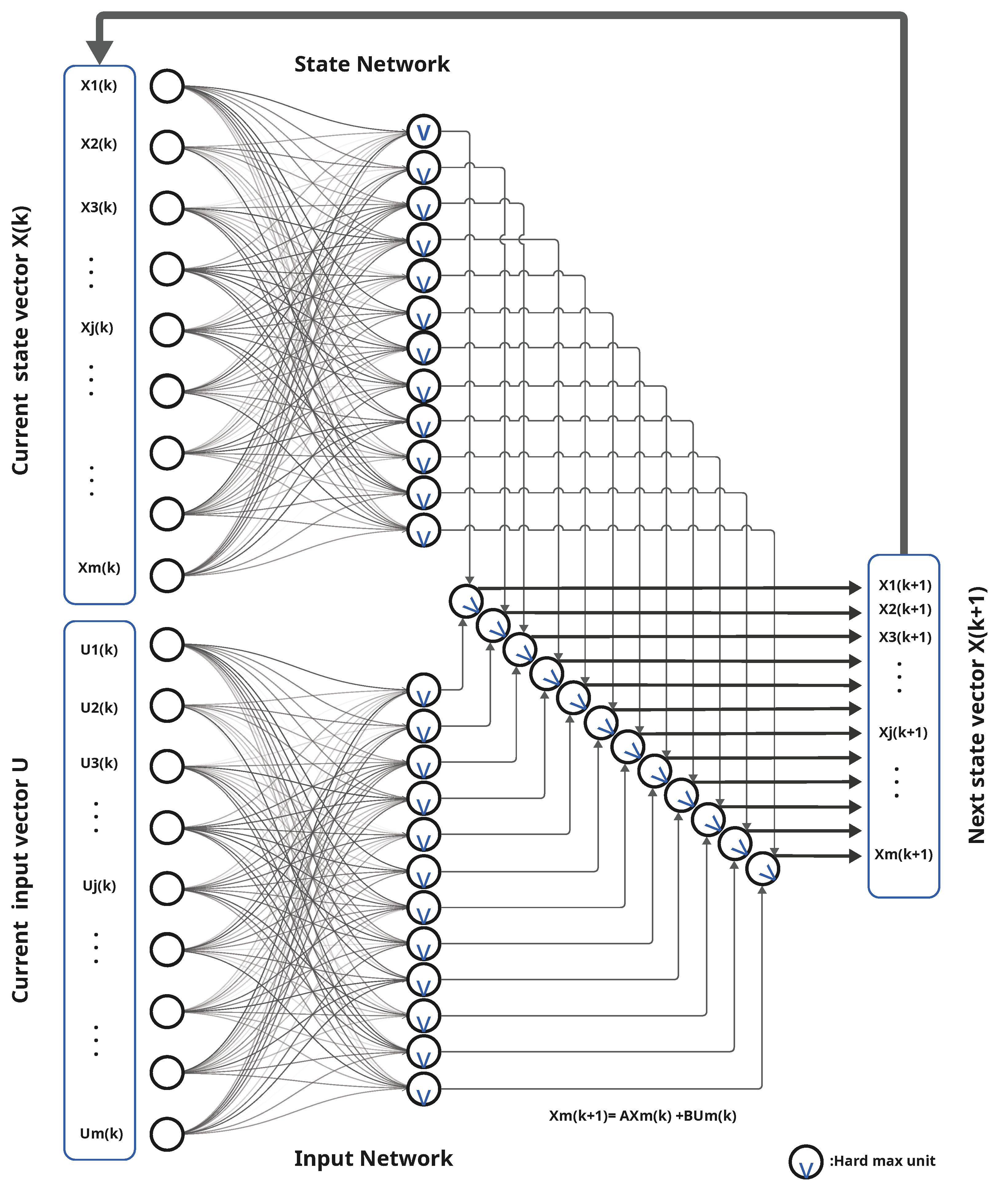 Ref. [17] recasts the problem of state space identification into an extended linear complementarity problem, which leads to identifying the parameters of the state space from input and output sequences. Moreover, mixed integer programming approaches were implemented to further optimize the efficiency. In the case of stochastic systems, ref. [18] proposed two approaches to infer the dynamical systems model based on an observed noisy orbit for a stochastic max-plus linear dynamical system. The first approach is the gradient-based exact solution, and the second approach is a less computation-intensive approximation method based on the higher-order moments of a random variable. The mentioned paper presents individually designed identification methods, while we focus on the relation between tropical geometry and neural networks to allow for standard learning approaches for neural networks. Further, we provide an integrated approach for date and counter representation identification, offering downstream applications particularly in production systems.