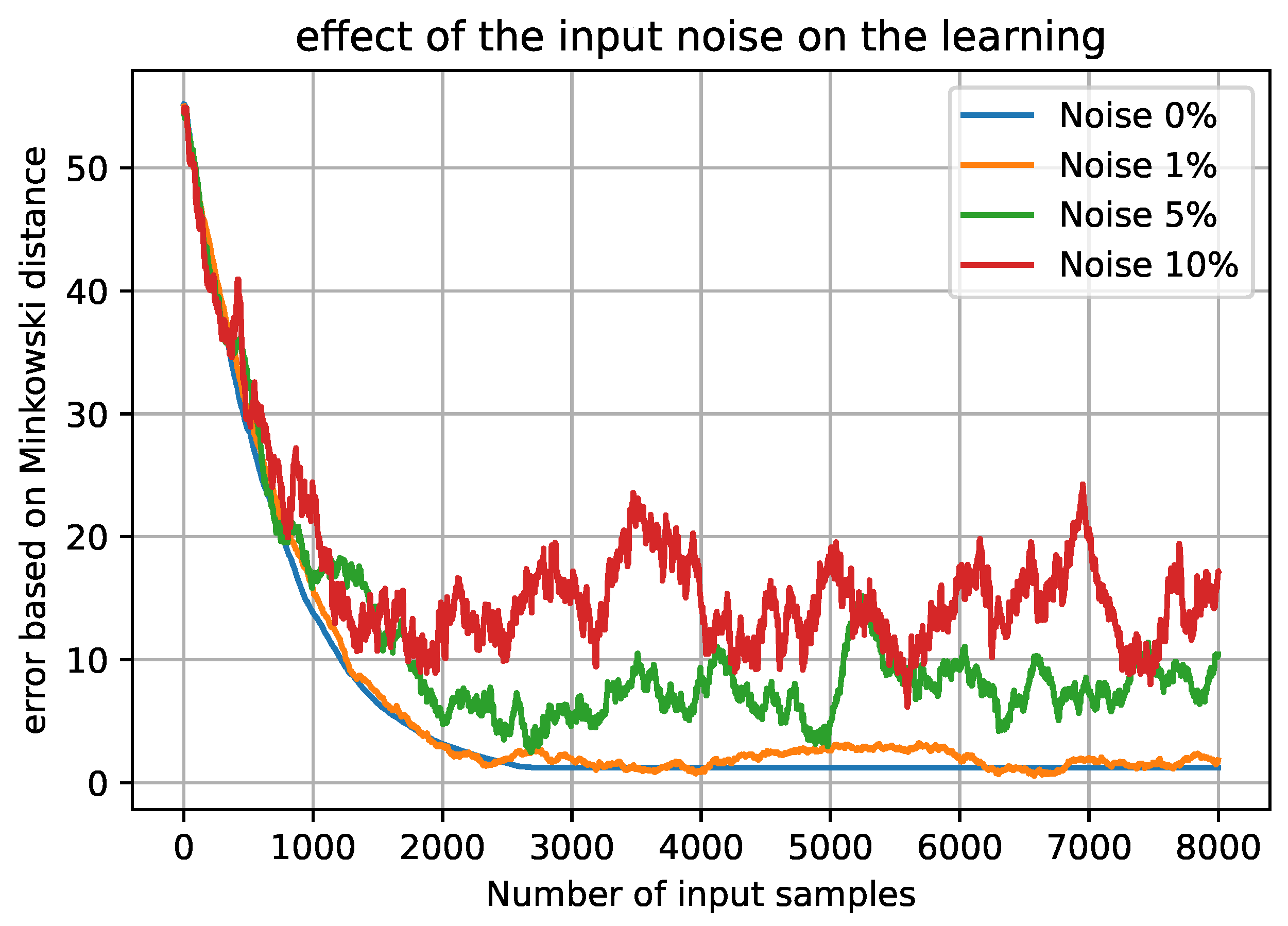 Table 2. Minkowski distances between learned and reference matrices and states for varying noise levels.