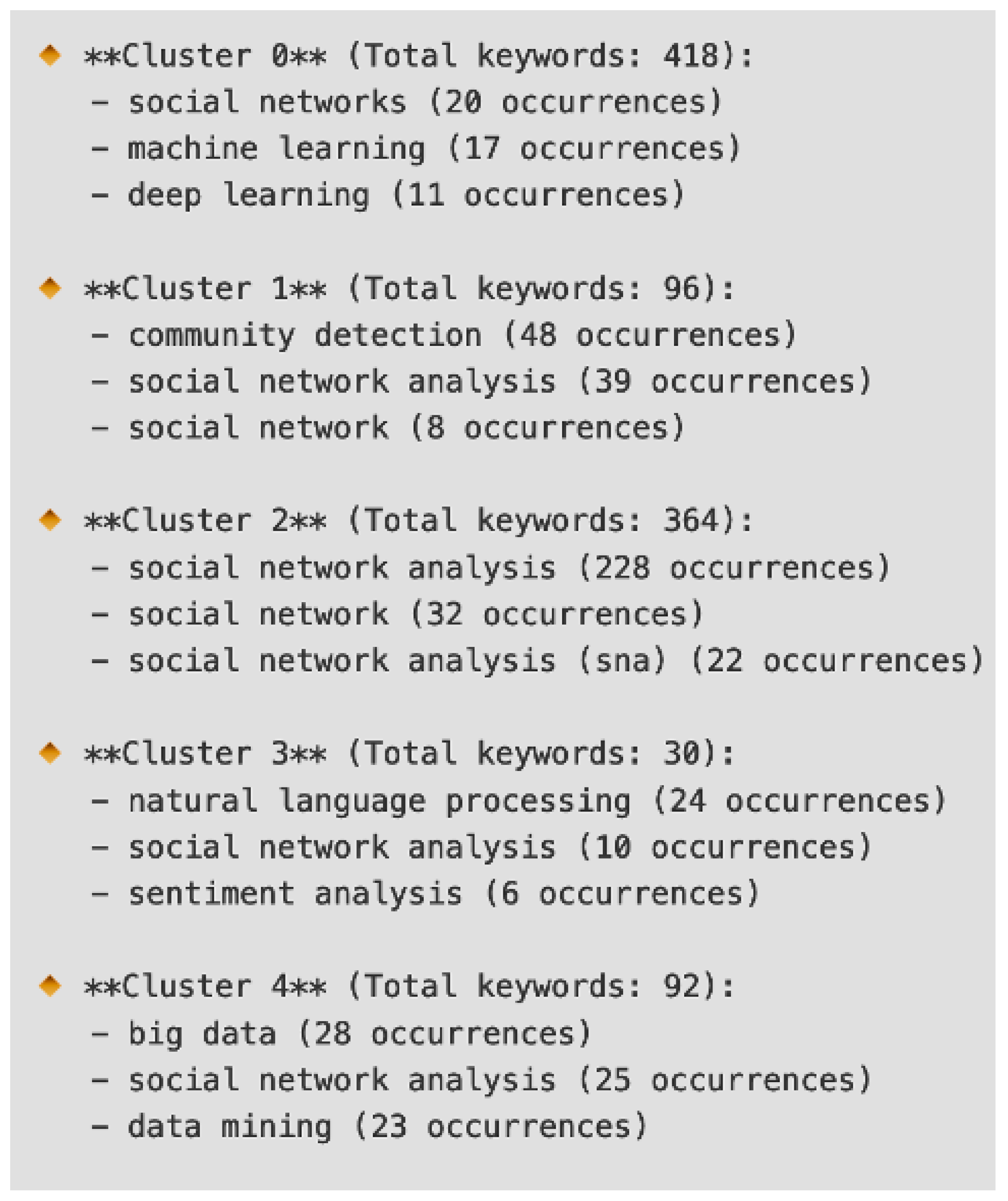 | Quantitative Analysis | Metrics such as degree centrality, betweenness, and closeness are interpreted, along with the identification of clusters and key nodes. |
