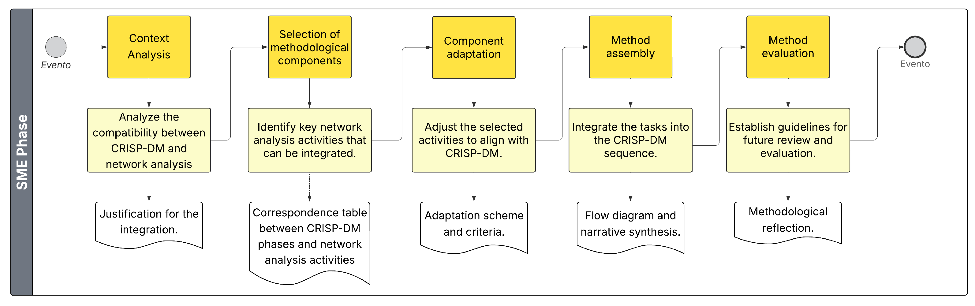 | SME Phase | Integration of the Models (CRISP-DM and Network Analysis) | Generated Outputs | Methodological Purpose of the Phase |