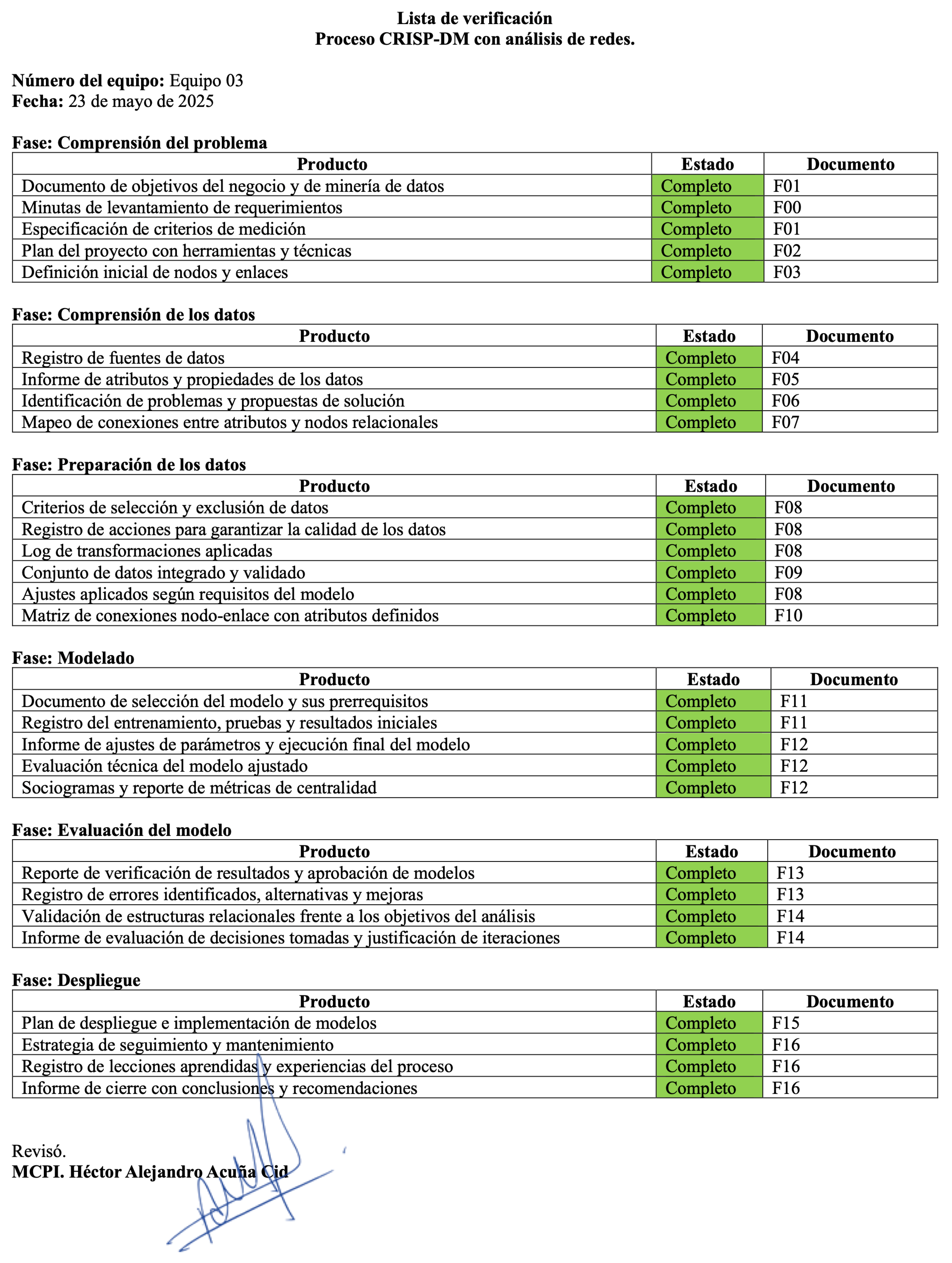 | Business Understanding | Define relationships between nodes and links | Incorporated to anticipate whether the phenomenon under study includes interconnected entities, allowing a relational structure to be considered from the beginning. |