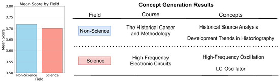 Human evaluation of the science and non-science courses, along with examples of concept generation in both fields [37].