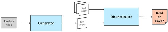 - Goodfellow, I.; Pouget-Abadie, J.; Mirza, M.; Xu, B.; Warde-Farley, D.; Ozair, S.; Courville, A.; Bengio, Y. Generative Adversarial Networks. Commun. ACM 2020, 63, 139–144. [Google Scholar] [CrossRef]