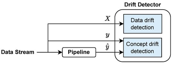 When they occur, concept and data drifts can significantly affect the performance of machine learning models; thus, the challenge of online learning is to build algorithms that are capable of adapting to changes, even in real time. Several approaches have been developed in this area [6,7,8,9], with models that are trained per data instance which may also include drift detectors, such as the Adaptive Windowing (ADWIN) estimator [20]. These approaches are analyzed in the following paragraphs.