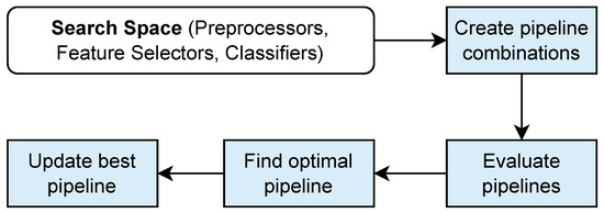 As shown in Table 1, there are several approaches that only offer classification models [6,7,8,9,10,11,14,15]; thus, they require significant effort by the user to preprocess the data and possibly perform feature selection. Even AutoML approaches are usually limited only to preprocessing methods [12,13,16], whereas ASML [17] and our proposed approach (AML4S) are the only ones that further support feature selection. As a result, AML4S does not require any knowledge of data or any machine learning expertise, as it identifies the optimal algorithms and parameters for each pipeline step (preprocessing, feature selection, model selection, hyperparameter optimization) automatically.