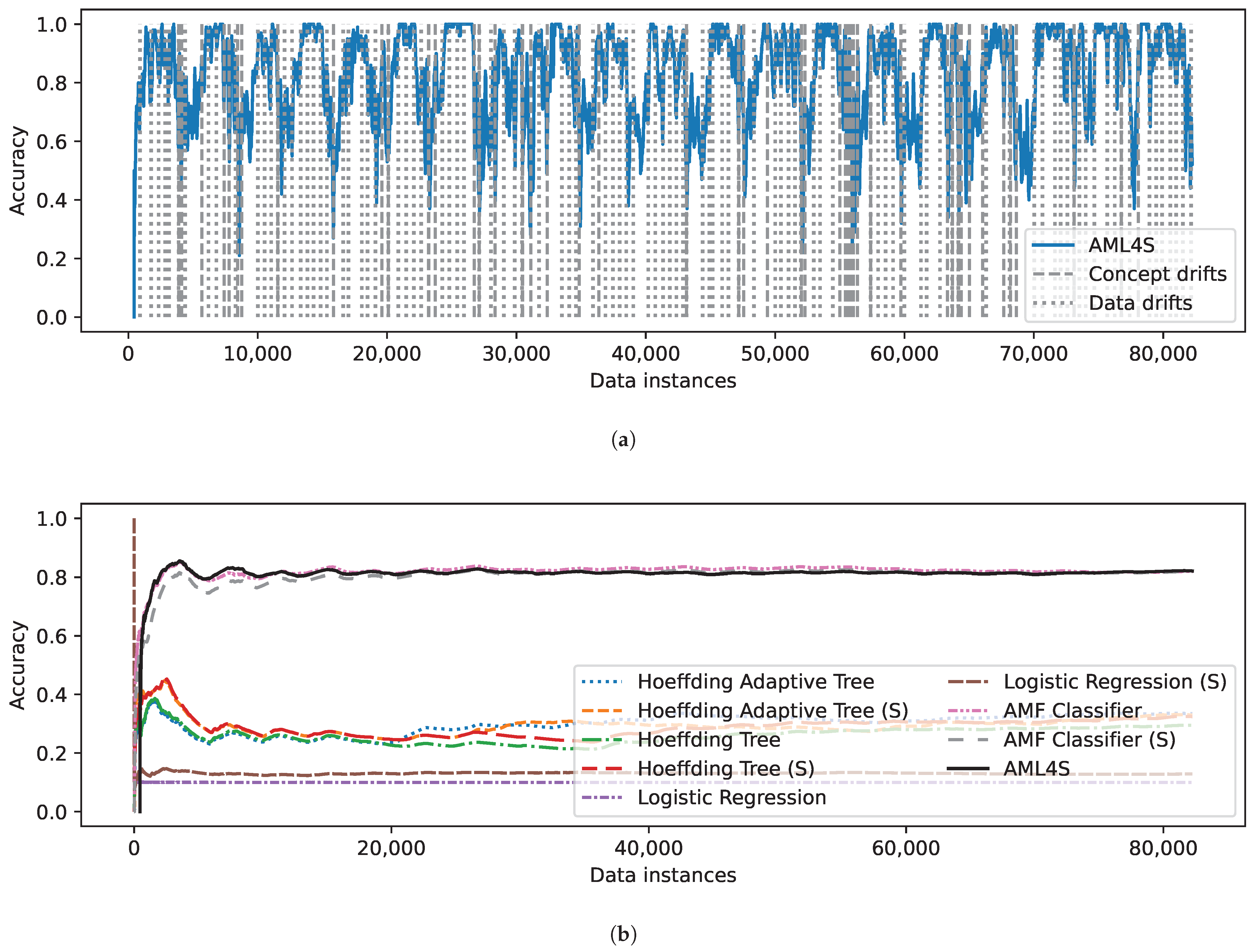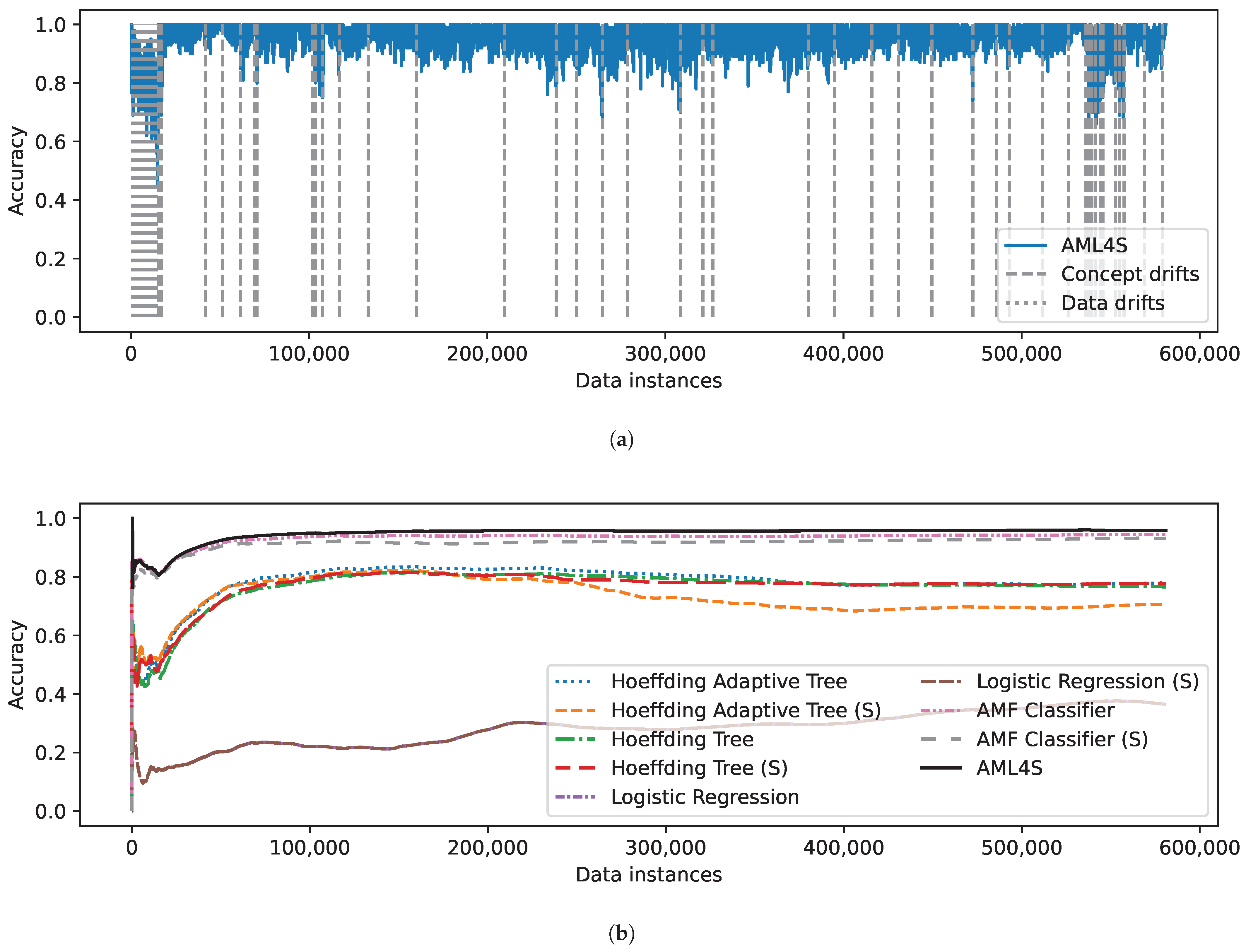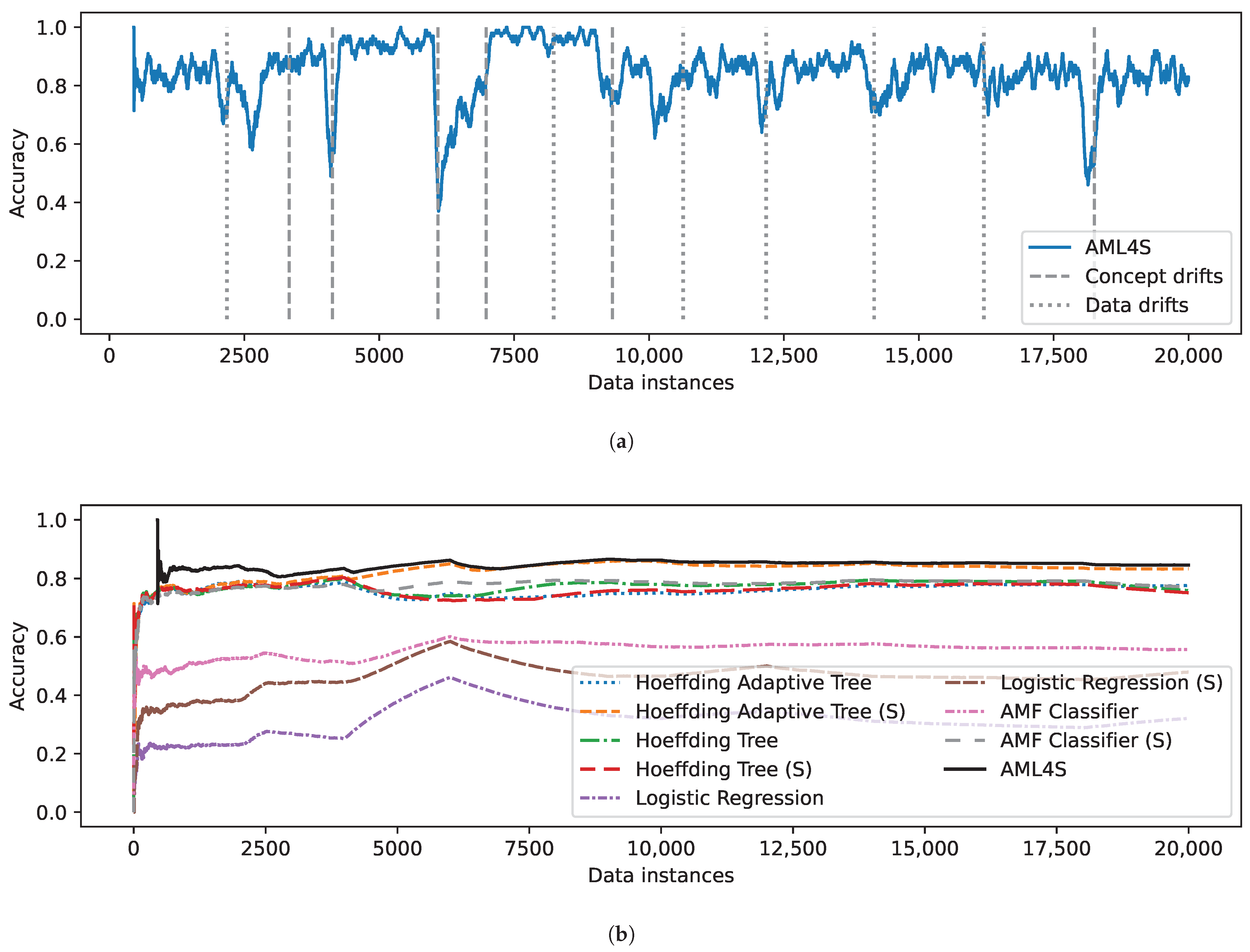 17]. AutoML is a field of machine learning that aspires to automate model selection and hyperparameter optimization, thus providing a configuration that is effective on a variety of data. In the context of online learning, AutoML models are typically coupled with drift detection mechanisms.