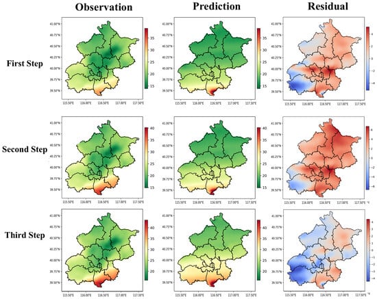 - The refined input data are passed to the proposed STGCA prediction model. The model utilizes a seq2seq architecture that combines GCN and GRU. In the encoder, the GCN is tasked with modeling intricate spatial relationships among raster cells, while the GRU is used to process time-series information to capture dynamic patterns of PM2.5 concentrations over time. The hidden representation generated by the encoder is passed to the decoder, which realizes multi-step prediction through the GRU and GCN layers and enhances the time-dependent representation through the attention layer to generate PM2.5 concentration values at future moments. This structure effectively integrates the spatio-temporal features, which makes the model highly accurate in capturing the spatial and temporal dependence of PM2.5 concentration changes in the Beijing area [38].