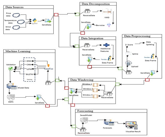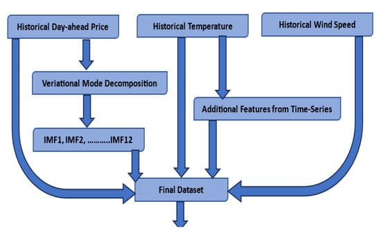Forecasting day-ahead electricity prices is a crucial research area. Both wholesale and retail sectors highly value improved forecast accuracy. Renewable energy sources have grown more influential and effective in the US power market. However, current forecasting models have shortcomings, including inadequate consideration of renewable energy impacts and insufficient feature selection. Many studies lack reproducibility, clear presentation of input features, and proper integration of renewable resources. This study addresses these gaps by incorporating a comprehensive set of input features, while these features are engineered to capture complex market dynamics. The model’s unique aspect is its inclusion of renewable-related inputs, such as temperature data for solar energy effects and wind speed for wind energy impacts on US electricity prices. The research also employs data preprocessing techniques like windowing, cleaning, normalization, and feature engineering to enhance input data quality and relevance. We developed four advanced hybrid deep learning models to improve electricity price prediction accuracy and reliability. Our approach combines variational mode decomposition (VMD) with four deep learning (DL) architectures: dense neural networks (DNNs), convolutional neural networks (CNNs), long short-term memory (LSTM) networks, and bidirectional LSTM (BiLSTM) networks. This integration aims to capture complex patterns and time-dependent relationships in electricity price data. Among these, the VMD-BiLSTM model consistently outperformed the others across all window implementations. Using 24 input features, this model achieved a remarkably low mean absolute error of 0.2733 when forecasting prices in the MISO market. Our research advances electricity price forecasting, particularly for the US energy market. These hybrid deep neural network models provide valuable tools and insights for market participants, energy traders, and policymakers. Full article