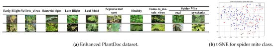 Enhanced PlantDoc dataset and t-SNE visualization for spider mite class.