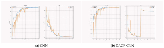 Training and validation curves of baseline and DAGP-integrated custom CNN.