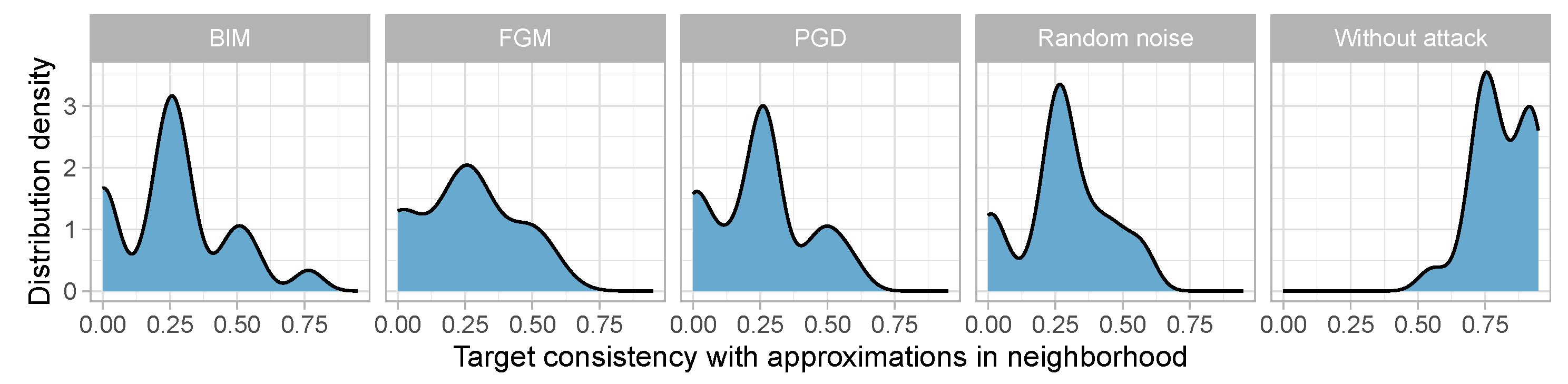 31], as this approach is stable and resistant to minor changes in the input data. Ensemble methods, such as the one used here, are characterized by high stability in the sense of approximating the decisions of the underlying model, which is crucial in the context of the detection of adversarial attacks, where even small perturbations in the data can significantly affect the results.