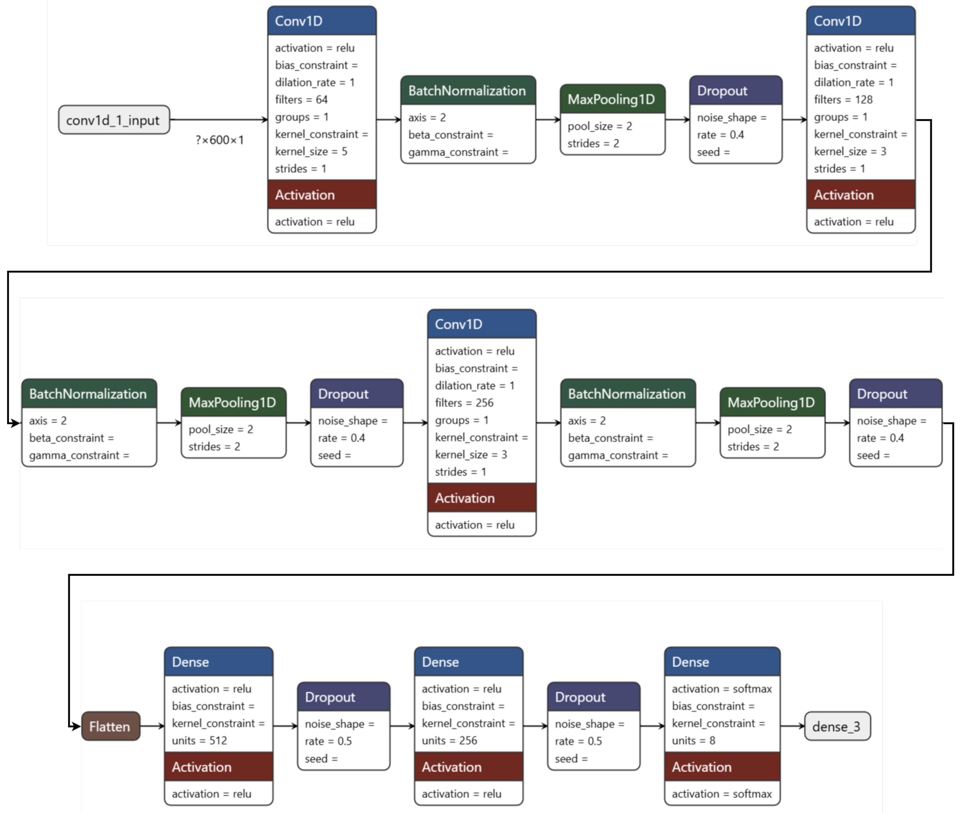 - The first layer applies a 1D convolution to the input as in Equation (18),