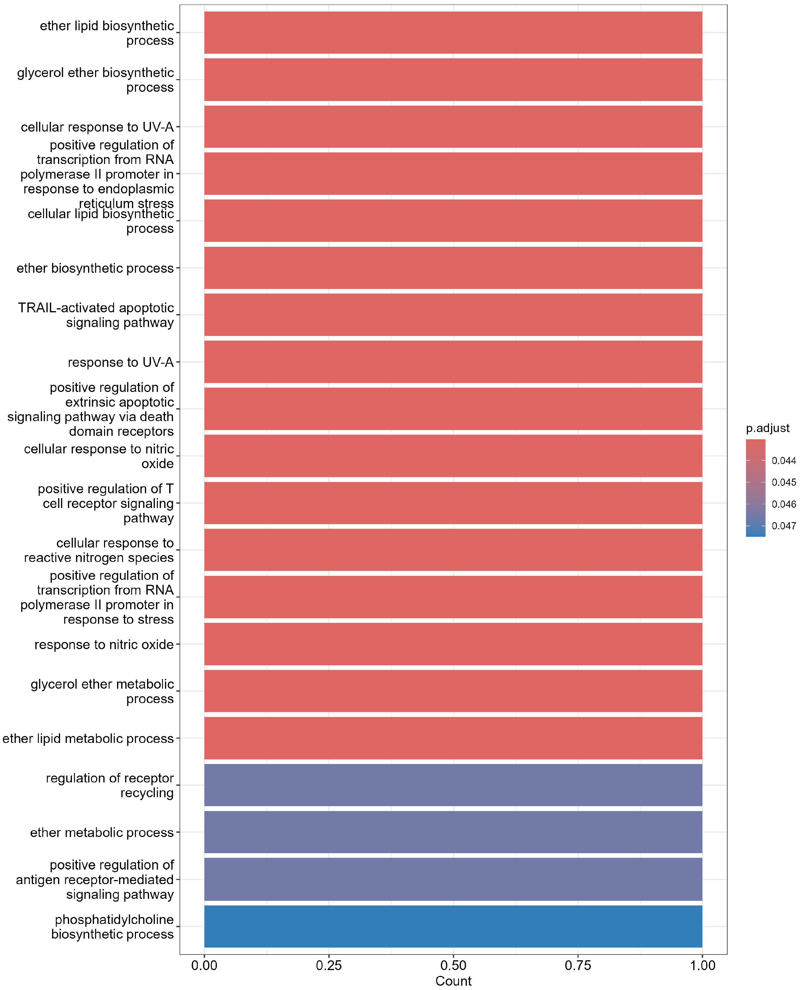 - Threshold: Significant GO keywords were found with a p-adjusted value () below 0.05.