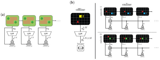- Prakash, B.; Oates, T.; Mohsenin, T. Using LLMs for augmenting hierarchical agents with common sense priors. In Proceedings of the International FLAIRS Conference, Daytona Beach, FL, USA, 20–23 May 2024; Volume 37. [Google Scholar]