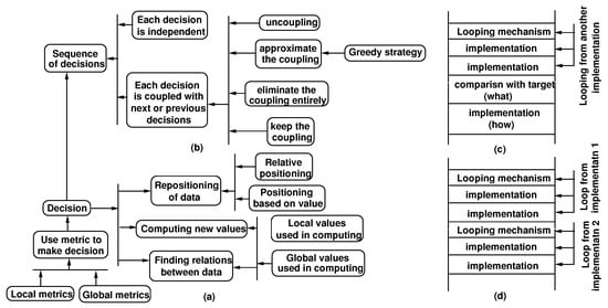 - Ill-defined problem solving for implementation construction represents cases in which the existing implementations cannot solve all requirements, i.e., they satisfy some but not others [12,13]. Changing the parameters of the implementation does not address the issue. Problem solving includes options, like producing a description of the implementation trade-offs by parameter sampling and selecting the best compromise, exploring implementation alternatives for specific fragments of the implementation so that better trade-offs result for the overall solution, and selecting a different approach (principle) for an implementation, including situations when a new implementation must be built, similar to open-ended solving for building a new implementation.