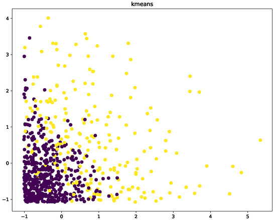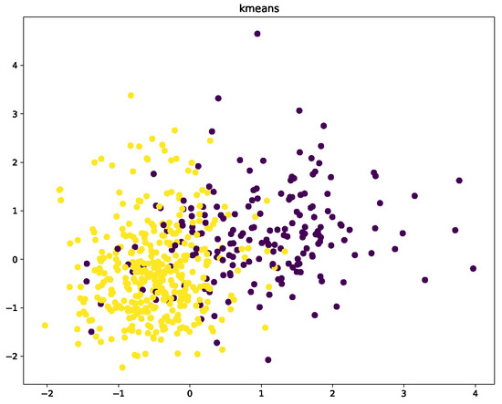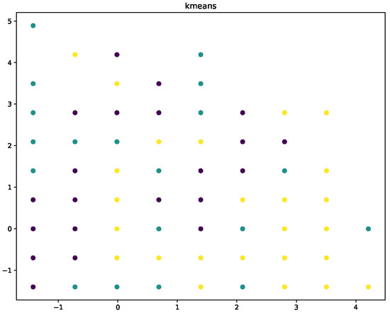 The final phase of the algorithm employs the K-Means clustering algorithm to refine the clustering results. Each row of the indicator matrix , which represents the cluster memberships of the representative points, is treated as a point in [29]. The K-Means algorithm is then applied to these points to produce the final clustering of the original dataset into k clusters.