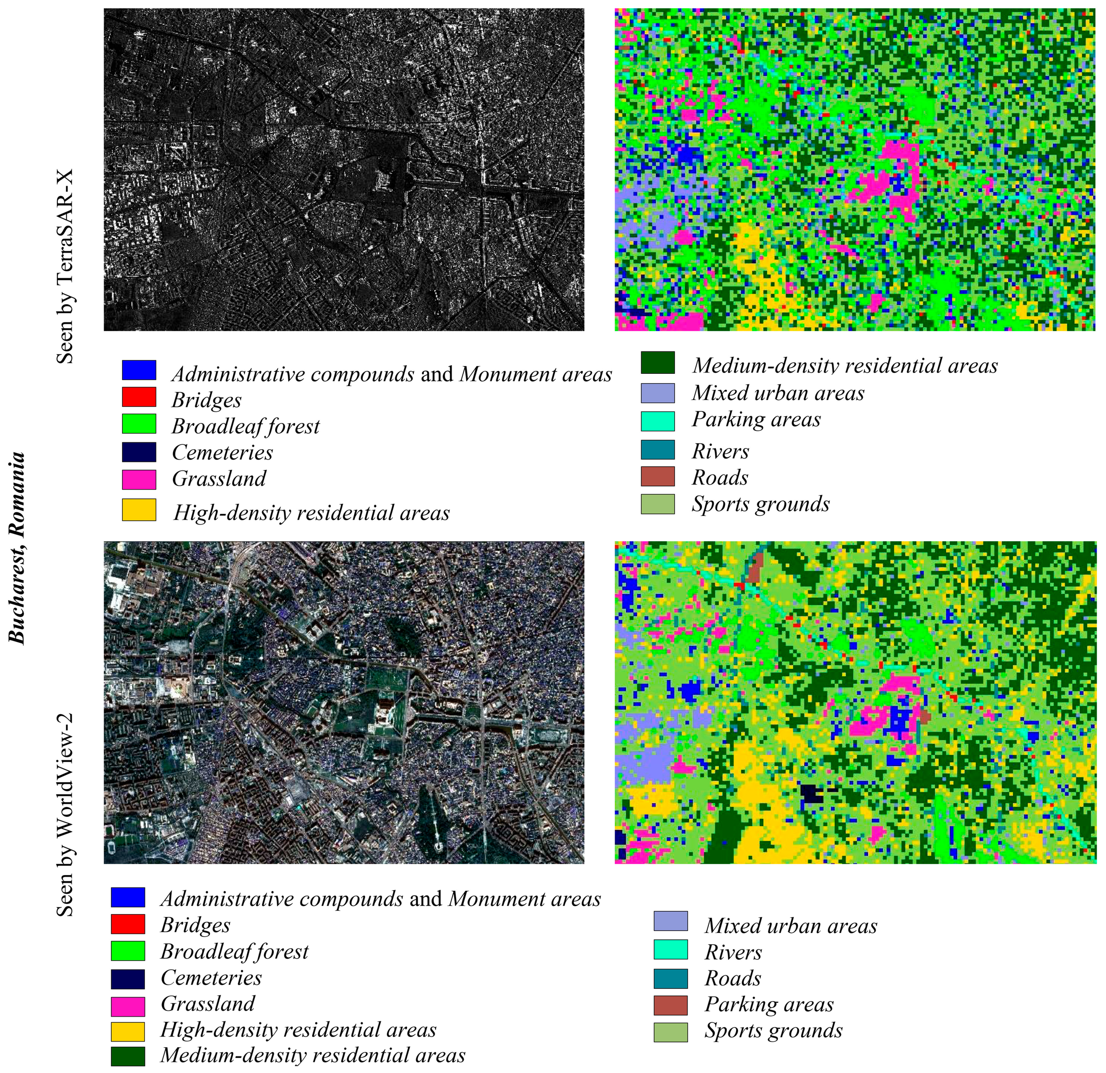 | Bucharest, Romania | TerraSAR-X | X-band SAR | Multi-look Ground range Detected (MGD) | 1/1 | 2.9 m | HH | 160 × 160 | 4455 |