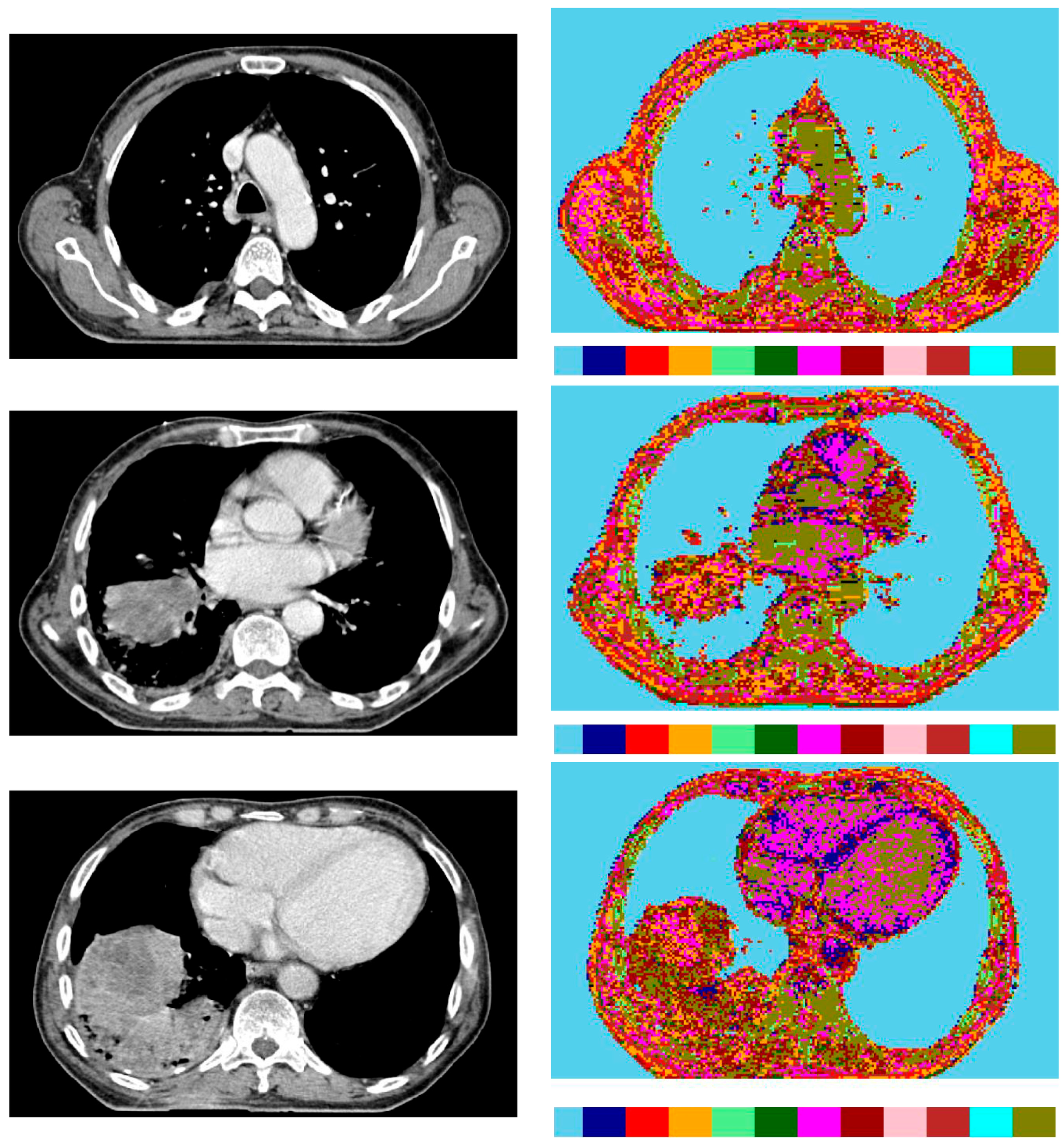 - The second dataset of images is from the patients with lung tumours; there are 11,210 CT images and 25 pathology slices collected from 6 patients. From these, we selected 10 images from 2 patients with lung adenocarcinoma. Usually, lung adenocarcinomas show an admixture of many architectural patterns such as acinar, papillary, micropapillary, lepidic, and solid growth patterns [32,33].