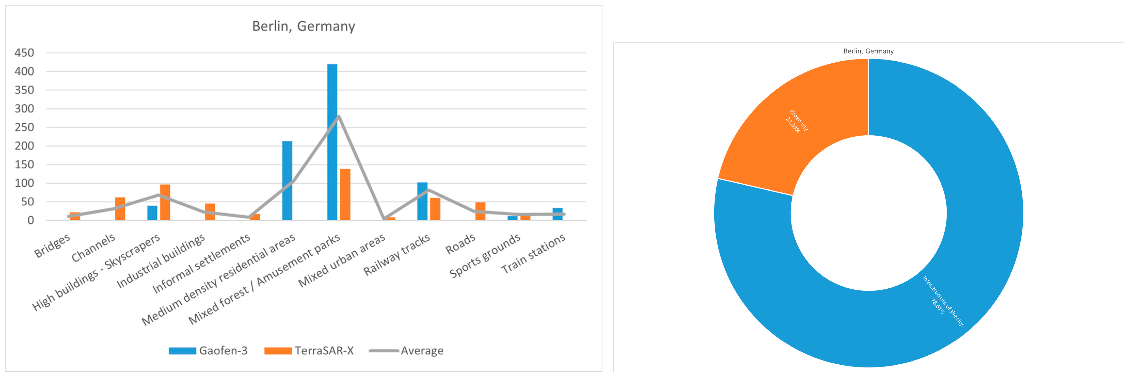 | Berlin, Germany | Gaofen-3 | C-band SAR | SpotLight (SL) | 1/1 | 1 m | HH | 256 × 256 | 2080 |