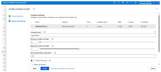 - Model Training: Training was carried out using each platform’s default AutoML workflow, which automatically handled feature preprocessing, algorithm selection, and hyperparameter optimization. This approach was intended to assess the ability of LC/NC tools to produce high-quality models without manual intervention or expert knowledge. All experiments were executed using free-tier or default compute configurations to reflect realistic user constraints.