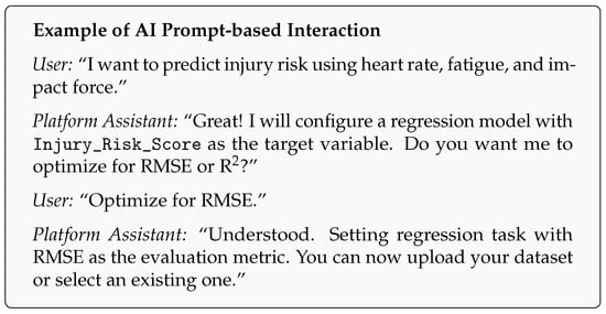 Illustrative example of how prompt-based guidance can assist non-technical users in configuring ML tasks.