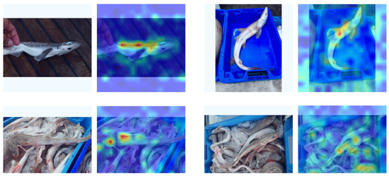 On the other hand, the proposed Prototype-guided Cross-Attention from Illustrations methodology was implemented using the same set of illustrations to ensure consistency. Examples of the resulting weight vectors, visualized as heatmaps, are shown in Figure 4. These maps mainly highlight fine-grained characteristics (e.g., spots, fins) that differentiate species from one another, while also enabling a more precise conditioning of the representation and providing a clear visualization of the concentration of distinctive features.