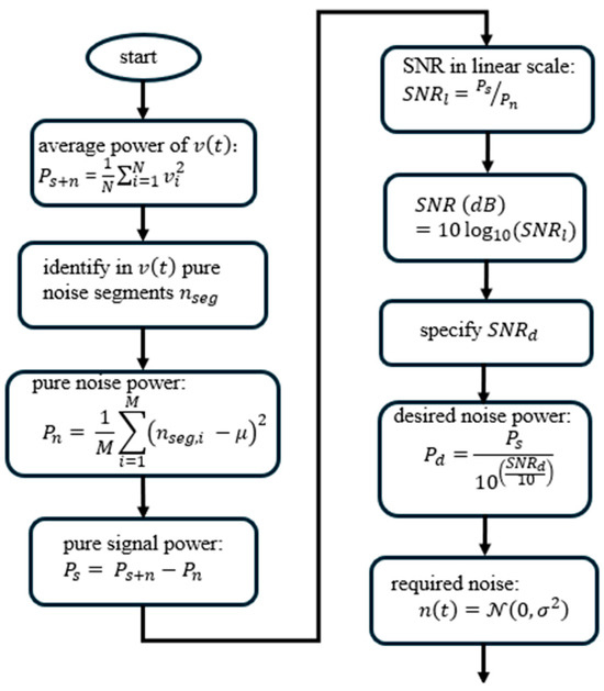 - Numerical SNR verification: The SNR is mathematically defined by the ratio of signal power and noise power, which is equivalent to the ratio of their respective root mean square (RMS) amplitudes, as in Equation (2):