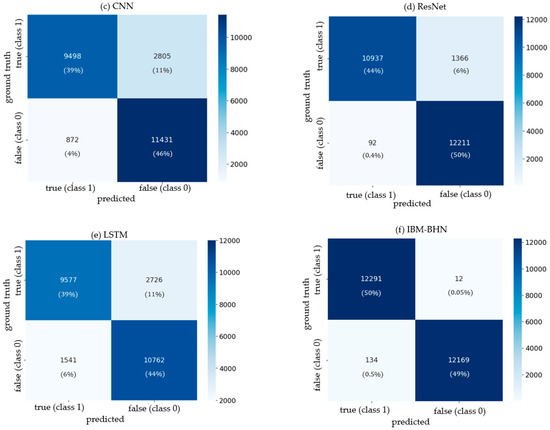 Some studies have leveraged the pattern recognition capabilities of deep learning, primarily using time–frequency representations to enhance the detection and classification of marine mammal vocalizations. For example, Wang et al. [23] and Thomas et al. [24] applied a CNN, reporting accuracies up to 84% and 95%, respectively. This method extracts spatial features from spectrograms using methods like the mel-filter bank. However, the reliance on static spectrogram images means that the models do not explicitly optimize for, or effectively capture, the temporal and cepstral features that could provide complementary insights into vocalization dynamics. While CNNs excel at spatial processing, their inability to model long-term temporal dependencies limits their robustness in real-world variable acoustic environments [22]. This limitation extends to other CNN variants that rely on spectrogram-based inputs. For example, Kirsebom et al. [25], trained a NARW detector using a residual network (ResNet), focusing solely on frequency content and reporting a recall of 80% and precision of 90%. Likewise, Buchanan et al. [26] employed the LeNet architecture to extract frequency-based features, achieving an accuracy of 96%. Beyond the use of CNN methods, some studies have explored the use of recurrent neural networks (RNNs) to address the need for modeling temporal dependencies. For example, ref. [27] used a LSTM network to model sequential dependencies over spectrogram features. This architecture is capable of capturing long-range temporal patterns, making it well-suited for analyzing complex vocal sequences. However, this model typically operates on a single feature domain (spectrograms), which limits the ability to capture more complementary information due to domain-specific constraints. Moreover, standard LSTM networks process input sequences in a unidirectional manner, restricting their contextual understanding to preceding information only [28]. This limits their effectiveness in capturing bidirectional temporal dependencies.