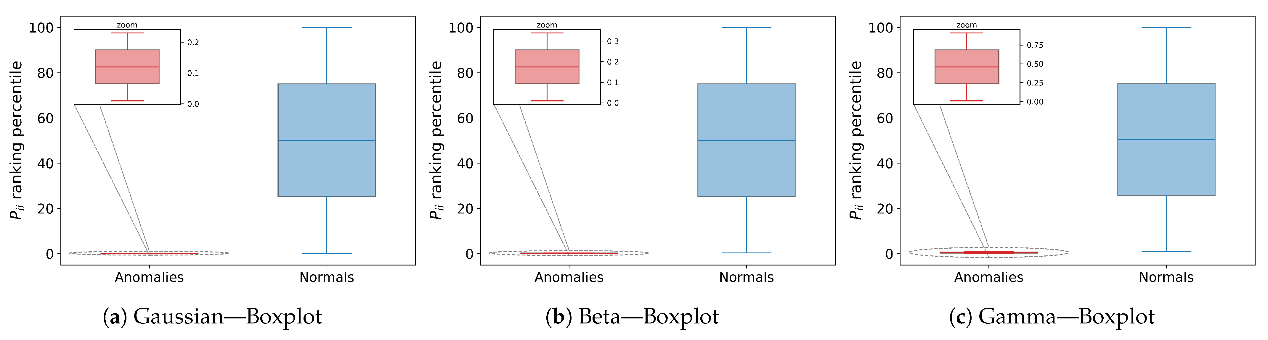 18] evaluated over the diagonal elements of the Markov transition matrix. These elements encode direct anomaly probabilities. The resulting ordered probability vector ranks instances by their degree of anomalousness, and the generated boxplots qualitatively confirm that the most atypical cases appear at the top.