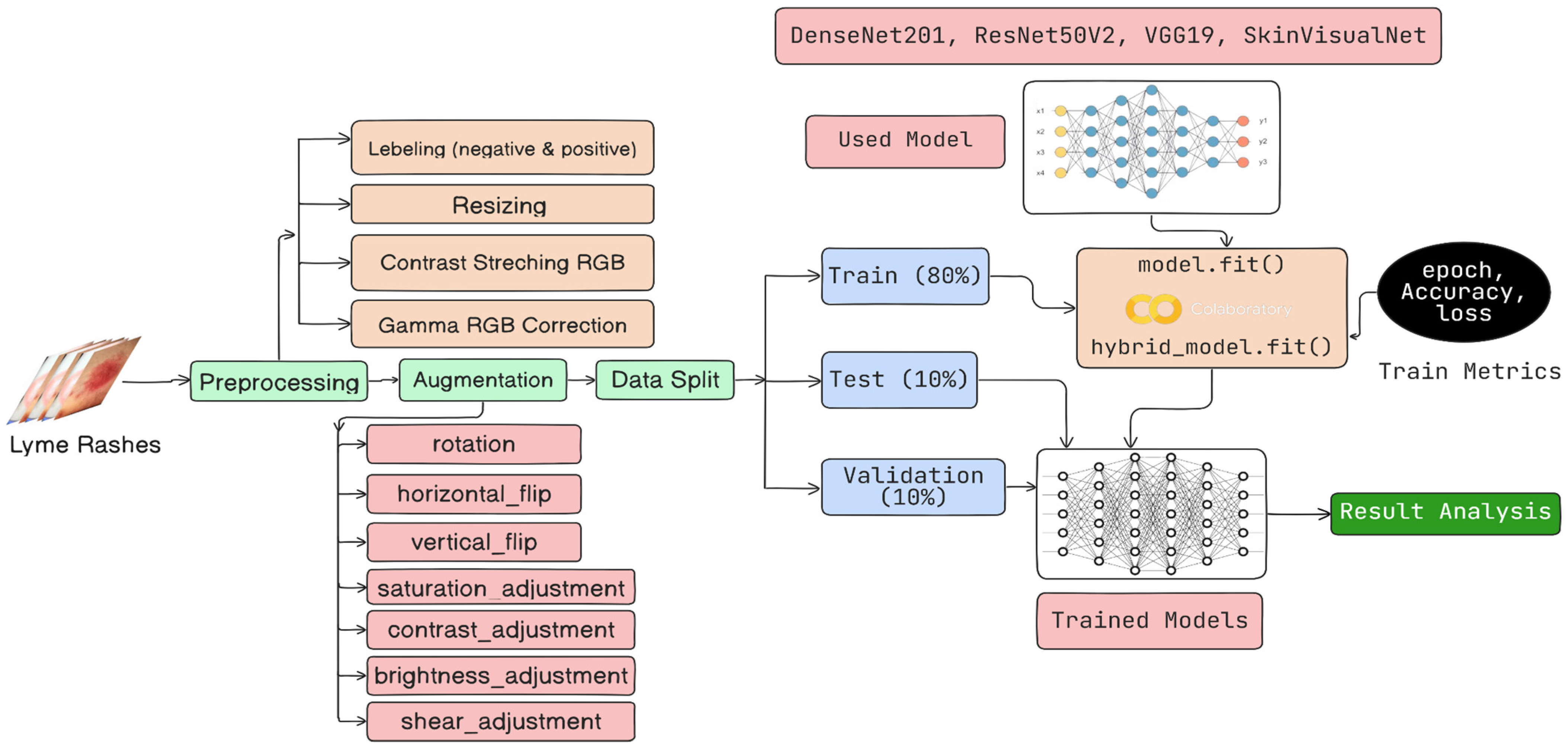 | Saravanan et al. (2023) [15] | Lyme Disease Image Dataset (889 images) sourced from Kaggle | Artificial Neural Network (ANN) |