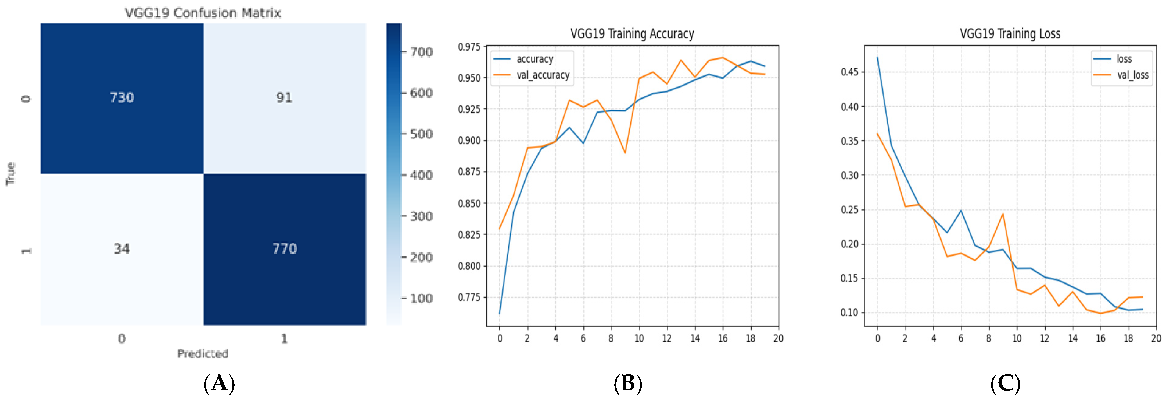 | VGG19 | 89.43% | 95.77% | 92.49% | 92.31% |
