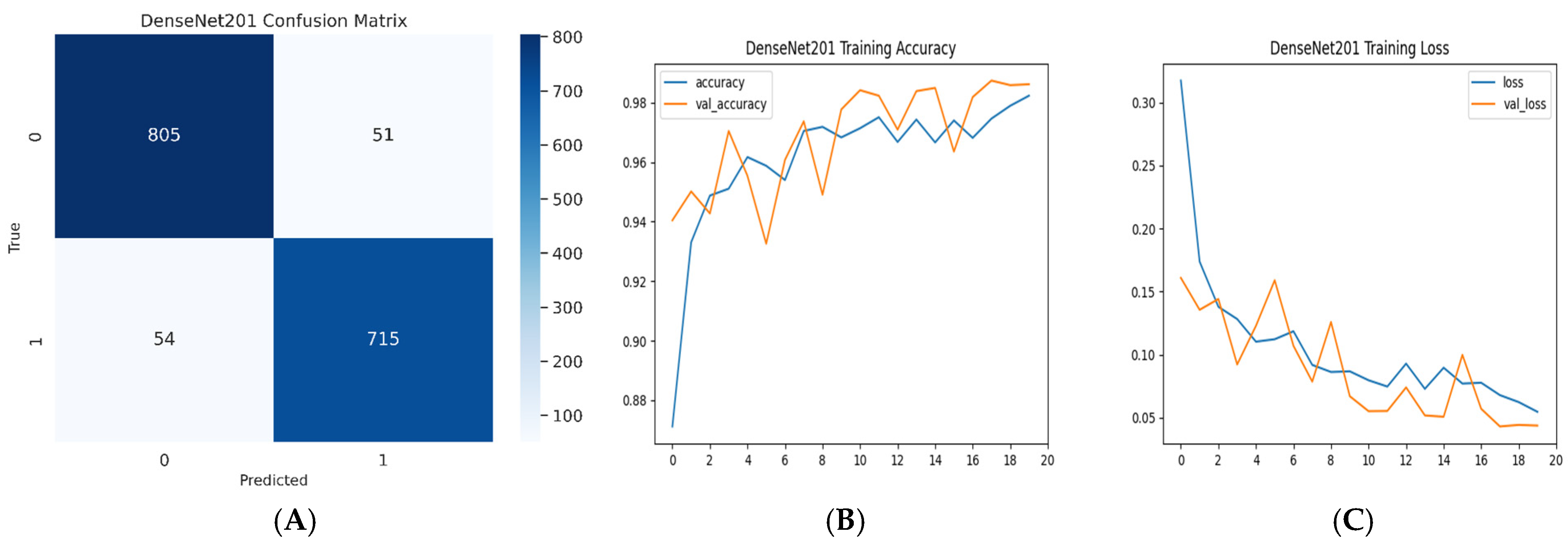 | DenseNet201 | Conv1_x | 7 × 7 | ReLU | MaxPooling (3 × 3, stride 2) | Adam | None | 0.00001 | 1463.42 |