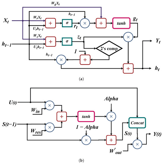 General architectures of: (a) the GRU model and (b) the ESN model.