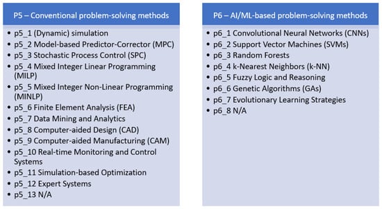 The typical set of conventional computational problem-solving methods in manufacturing, considered in this work, includes the following methods and tools: (Dynamic) simulation [6]; Model-based Predictor-Corrector (MPC) [7,8]; Stochastic Process Control (SPC) [9,10]; Mixed Integer Linear Programming (MILP) [11]; Mixed Integer Non-Linear Programming (MINLP) [12,13,14]; Finite Element Analysis (FEA) [15,16]; Data Mining and Analytics [17,18]; Computer-aided Design (CAD) [19,20]; Computer-Aided Manufacturing (CAM) [20,21]; Real-time Monitoring and Control Systems [22,23]; Simulation-based Optimization [24,25]; and Expert Systems [26,27].