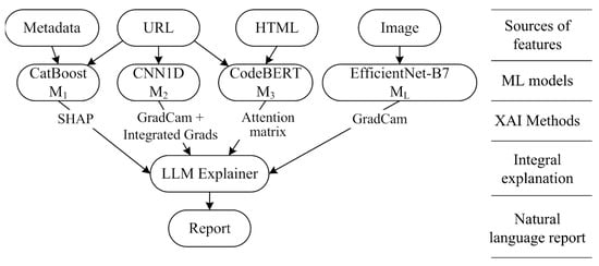 This article is structured as follows. Section 2 provides a comprehensive analysis and the systematization of relevant studies on the development of a machine and deep learning-based phishing detection system using explainable artificial intelligence mechanisms. Section 3 presents the proposed approach to building a multimodal phishing detection system based on deep learning and explainable artificial intelligence and discusses the system’s architecture, the composition of its software modules, and the tasks that it performs. Section 4 presents the results of comparative experiments that confirm the viability and effectiveness of the developed system and offers recommendations for its practical application. The Conclusions provide insights into the potential and prospective uses of multimodal systems.
