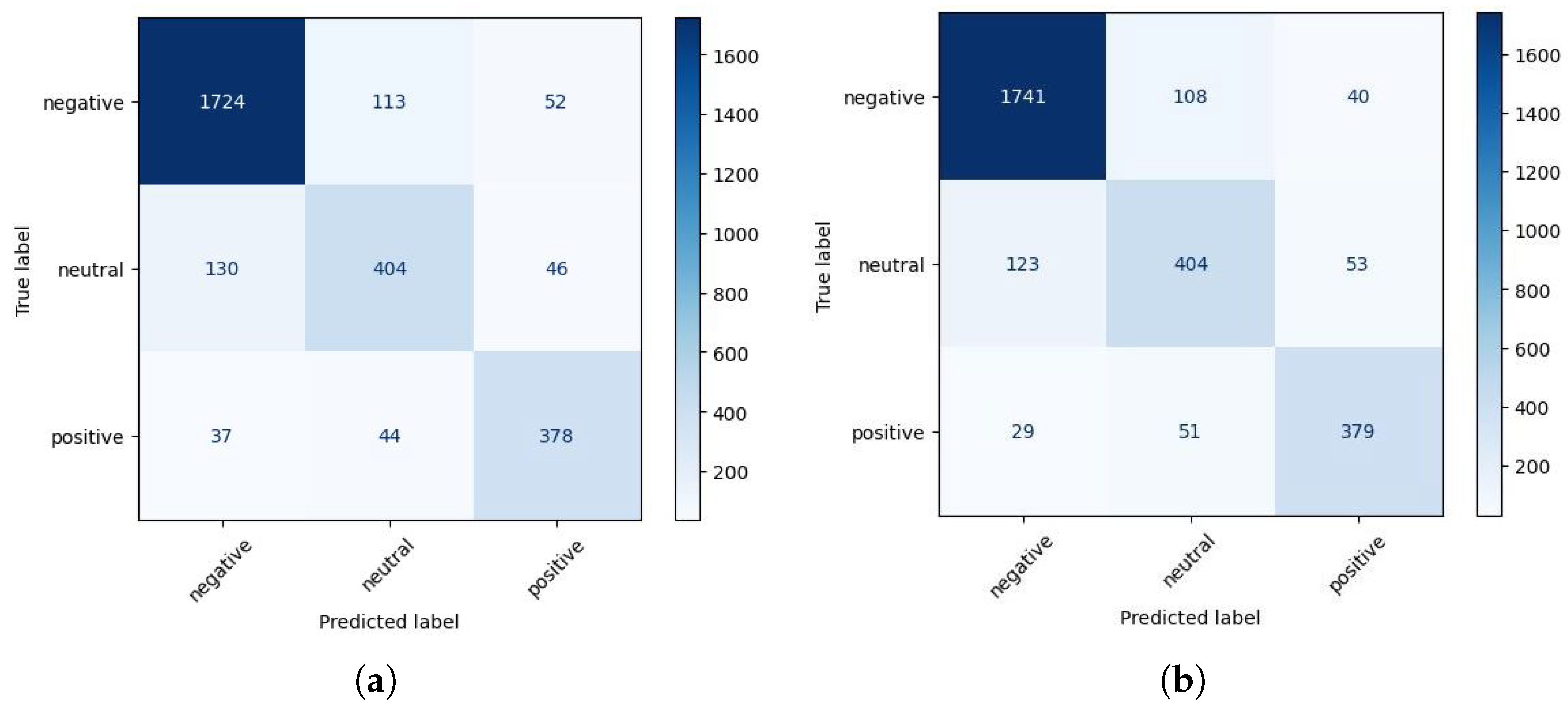 The dataset from SemEval 2017 Task 4  [31] contains 28,630 tweets annotated on a five-point sentiment scale toward specific topics (−2: very negative, −1: negative, 0: neutral, +1: positive, +2: very positive). The tweets average 15.7 tokens, including social media elements such as hashtags and mentions. The class distribution is naturally imbalanced (8.2% very negative, 18.5% negative, 40.1% neutral, 24.3% positive, 8.9% very positive), reflecting real-world Twitter sentiment patterns.
